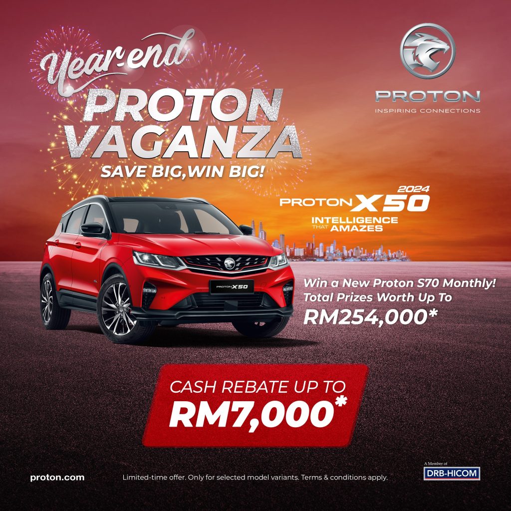 PROTON Vaganza menawarkan rebat sehingga RM7,000 pada model terpilih, termasuk PROTON X50 2024 dan PROTON X70 2025.